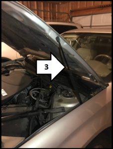 - The hood will eventually open fully from the power of the hydraulic bar on the right side (see third image).