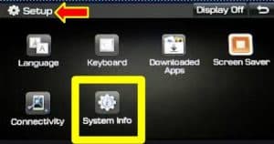 If the vehicle is turned OFF during the update process, the update will resume AFTER the vehicle is restarted. If the update does not resume, return to the System Info menu and touch the Update icon to initiate the update again.